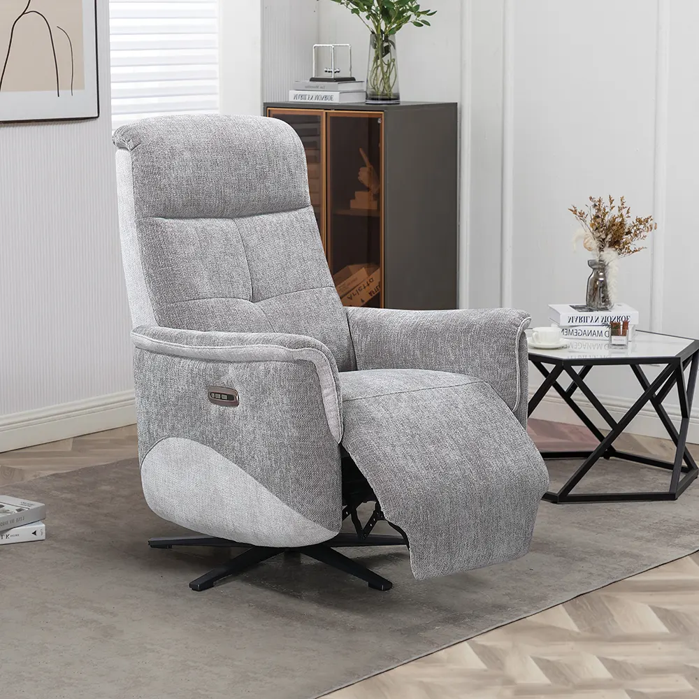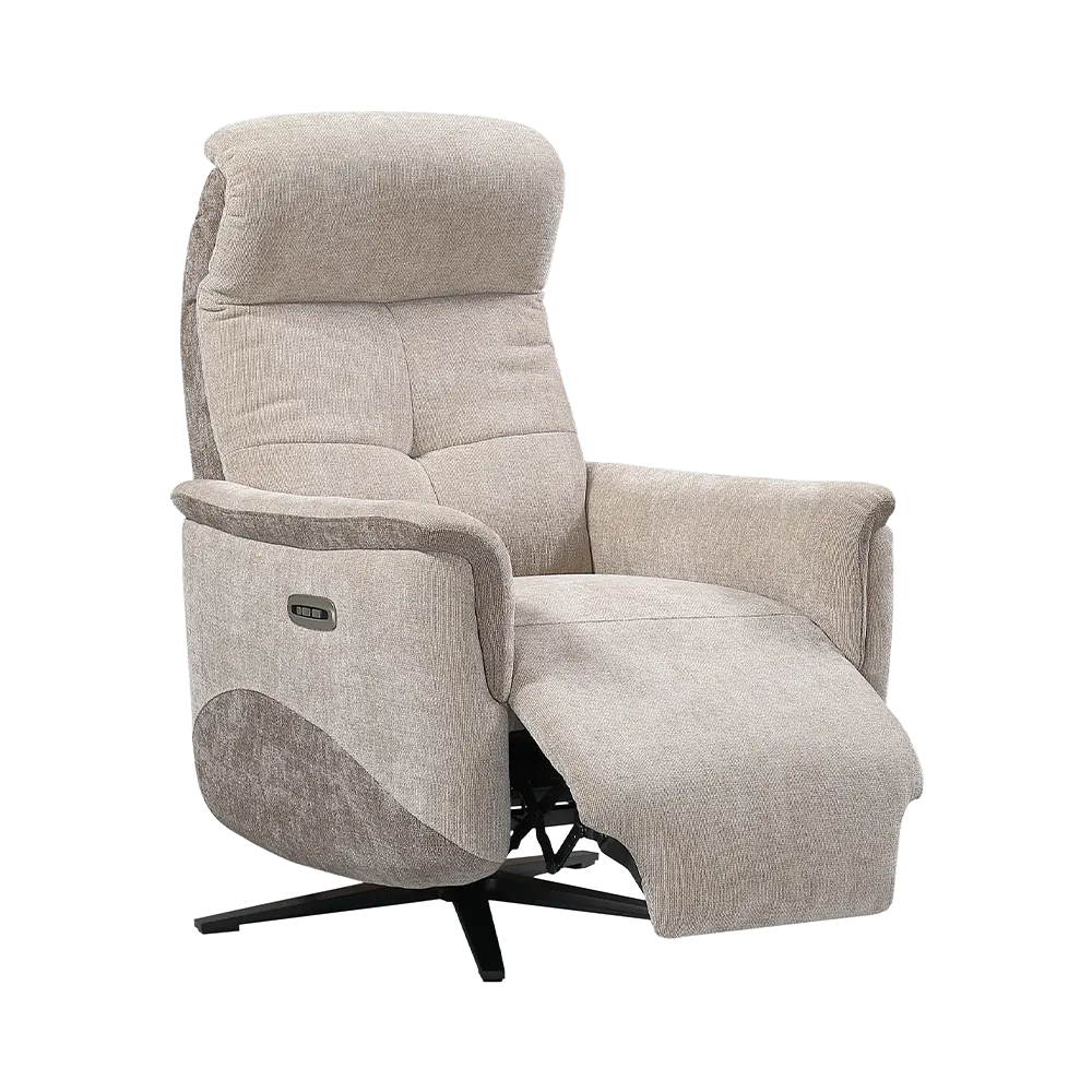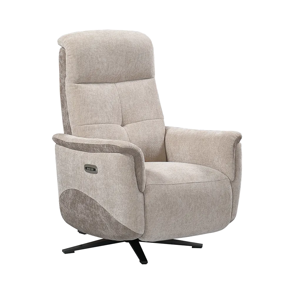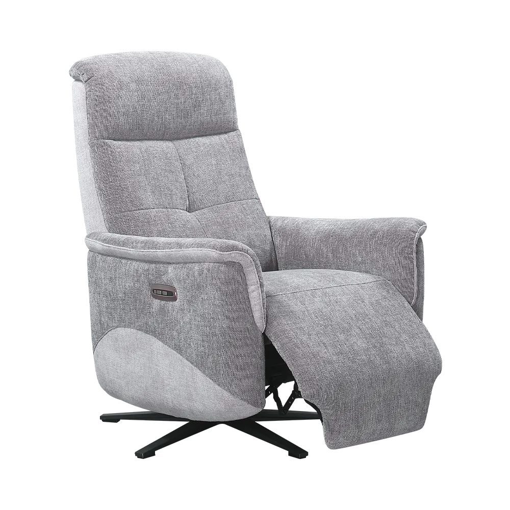Grâce à son mécanisme 2 moteurs, le fauteuil pivotant Boréal saura répondre à toutes vos attentes de relaxation. Sa touche de remise à zéro permet un retour en position initiale en toute facilité. Muni d’une têtière ajustable, vous pourrez adapter vos instants de détente aux grés de vos envies. Vous pouvez assortir ce fauteuil avec l’ensemble salon Boréal, canapé 2 et 3 places à relaxation électrique, canapé 2 places fixes ou encore fauteuil 4 pieds fixe.
